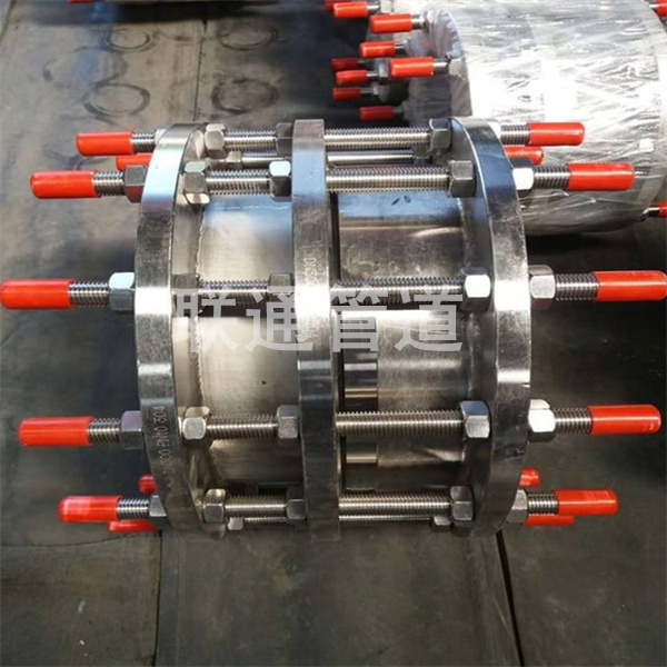 不鏽鋼傳力接頭,型號規格VSSJAFG(1999規範)或CF(2002標準)型,由法蘭式鬆套伸縮器和管箍法蘭、傳力絲杆等部件構成。它能傳送被聯接件的工作壓力推動力(盲板力)和賠償管道安裝偏差,不可以消化吸收徑向偏移適用於與泵、閘閥等配件的鬆套聯接。不鏽鋼傳力接頭優勢:不鏽鋼傳力接頭安裝操作方便便捷、方便閘閥安裝。不鏽鋼傳力接頭根據傳力螺栓(即全絲螺栓)可以把啟泵時的盲板推動力傳輸到泵和管路各位置,防止推動力集中化於管路或泵的近側產生撞擊力損害機器設備。