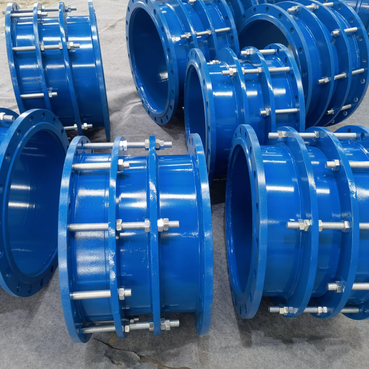 法蘭式鬆套伸縮接頭產品結構設計合理,密封性能可靠,安裝,拆卸簡便,適合連接輸送水、油、氣及顆粒粉狀物的鋼管、鑄鐵管、球墨鑄鐵管、PVC管、ABS等等。鬆套伸縮節安裝在管道上後,擰緊螺母彈性密封圈,在螺母壓蓋的作用下依靠相互斜度,緊壓在管子外圈密封和連接作用。當溫度變化時管子能在接頭中間自由的伸縮,當地基下沉,管子能偏斜,並確保密封無滲漏,從而起到自動補償的目的。
