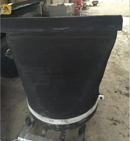 YJ-T型橡膠排汙止回閥在閥體安裝部位采用套筒設計,套入匹配的連接管道,管道與套筒內壁可塗加水工膠密封,並采用不鏽鋼卡箍。卡箍卡口之間應適當加墊墊片,拚緊聯接螺栓,若采用輔助襯管,聯接時,輔助襯管與預留管道密封焊牢,由於閥體重量較大,加之工作時,閥體腹腔中大量水及水流衝擊,須增加一支承拉杆。